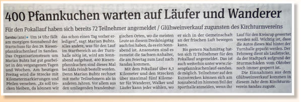 Die Veröffentlichung der Zeitungsartikel erfolgt mit freundlicher Genehmigung der Havelberger Volksstimme