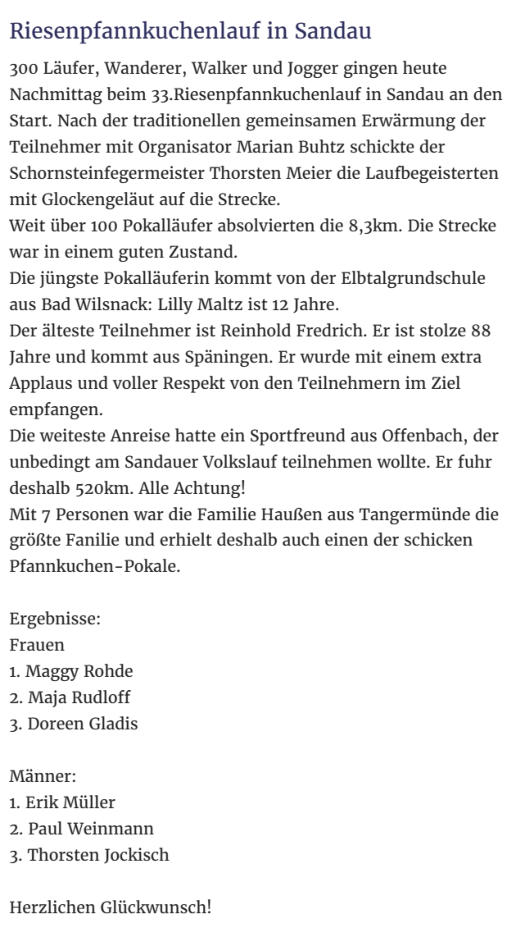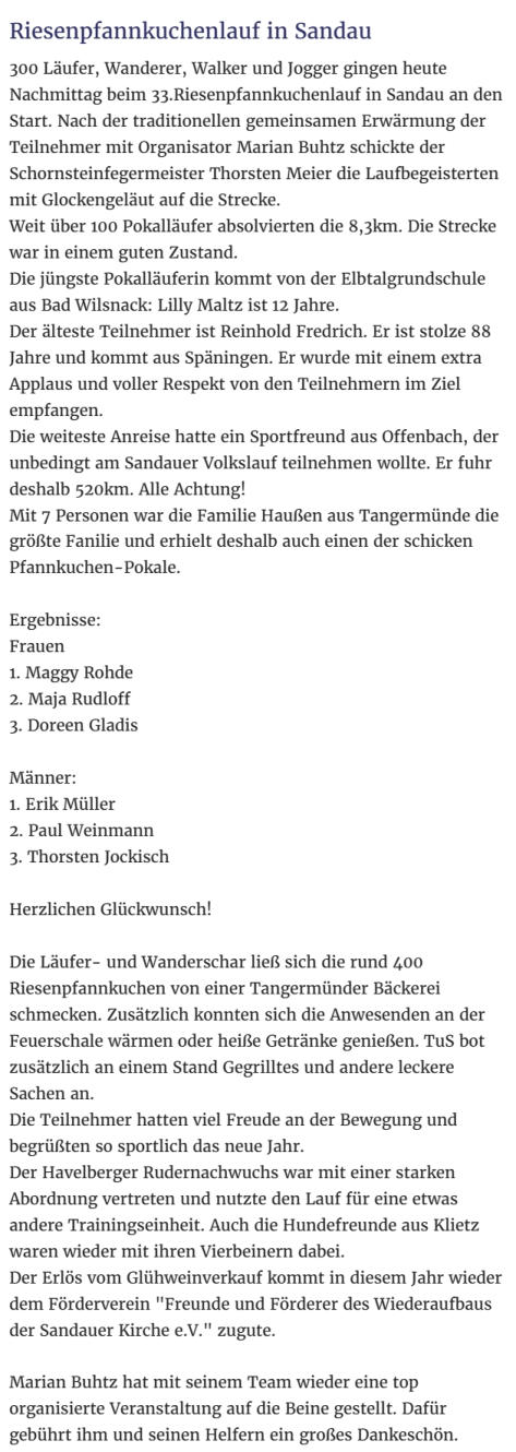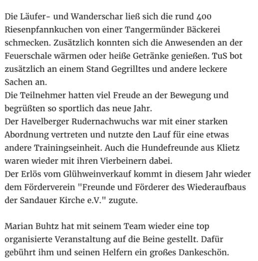 Die Veröffentlichung der Zeitungsartikel erfolgt mit freundlicher Genehmigung der Havelberger Volksstimme