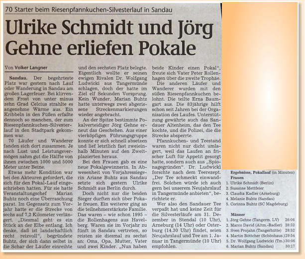 Die Veröffentlichung der Zeitungsartikel erfolgt mit freundlicher Genehmigung der Havelberger Volksstimme